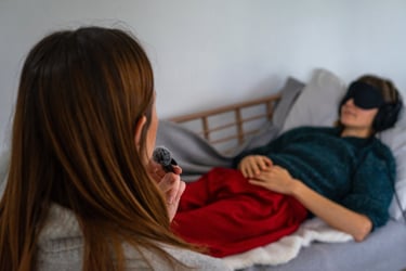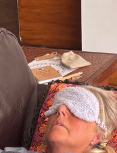 Headphones and an eye mask are available, and a microphone is used to help my voice gently guide your subconscious in a safe, calming way.
